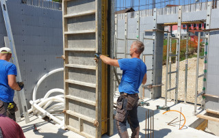 Pasivna hiša R - Izvedba AB slopa v pritličju Glede na odprtost tlorisa v pritličju in razporeditvi v nadstropju potrebujemo v etaži pritličja en klasično opažan AB slop, z betonom debeline 25 cm. Uigrana ekipa zmore takšne stvari brez težav. Uporabljena sta dva segmenta velikopanelnega opaža, da bo imel izdelek poleg statičnega tudi [...]
