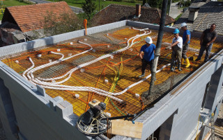 Pasivna hiša Š pri Pivki – Izvedba hidroizolacije na terasi in balkonu Na predhodni izvedbni naklonski beton, ki smo ga tudi strojno zalikali, smo izvedli hidroizolacijo, ki bo preprečila pronicanje meteorne vode v v objekt. Hidroizolacija je izvedena z bitumenskimi trakovi, ki so še dodatno zaščiteni s posipom. Na hidroizolacijo pride v naslednjih [...]