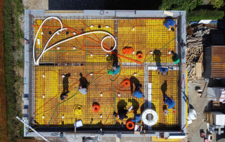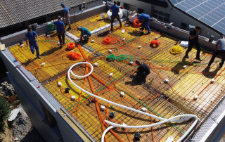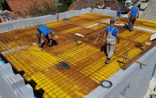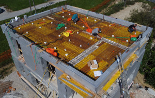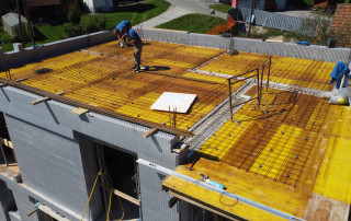 Pasivna hiša R - Zgornja cona armature v plošči nad nadstropjem Po zaključenih vseh razvodih inštalacij, ki so izvedene v plošči sledi polaganje zgornje cone armature in dodatne ojačitve, ki so potrebne. Pri plošči moramo narediti še obodni opaž. Na tem objektu je to končna plošča in je obenem konstrukcija strehe. Pred betoniranjem [...]