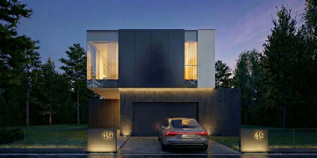 Študija fasad – Pasivna hiša B, Ljubljana Pri projektu Pasivna hiša B v Ljubljani smo pripravili študijo različnih verzij fasade na ulični strani objekta. Na vizualizacijah preverjamo, kako se spreminja značaj hiše z različnimi kombinacijami materialov, barv in tekstur – od temnejših kovinskih oblog do kombinacije betona in lesa – ter kako [...]