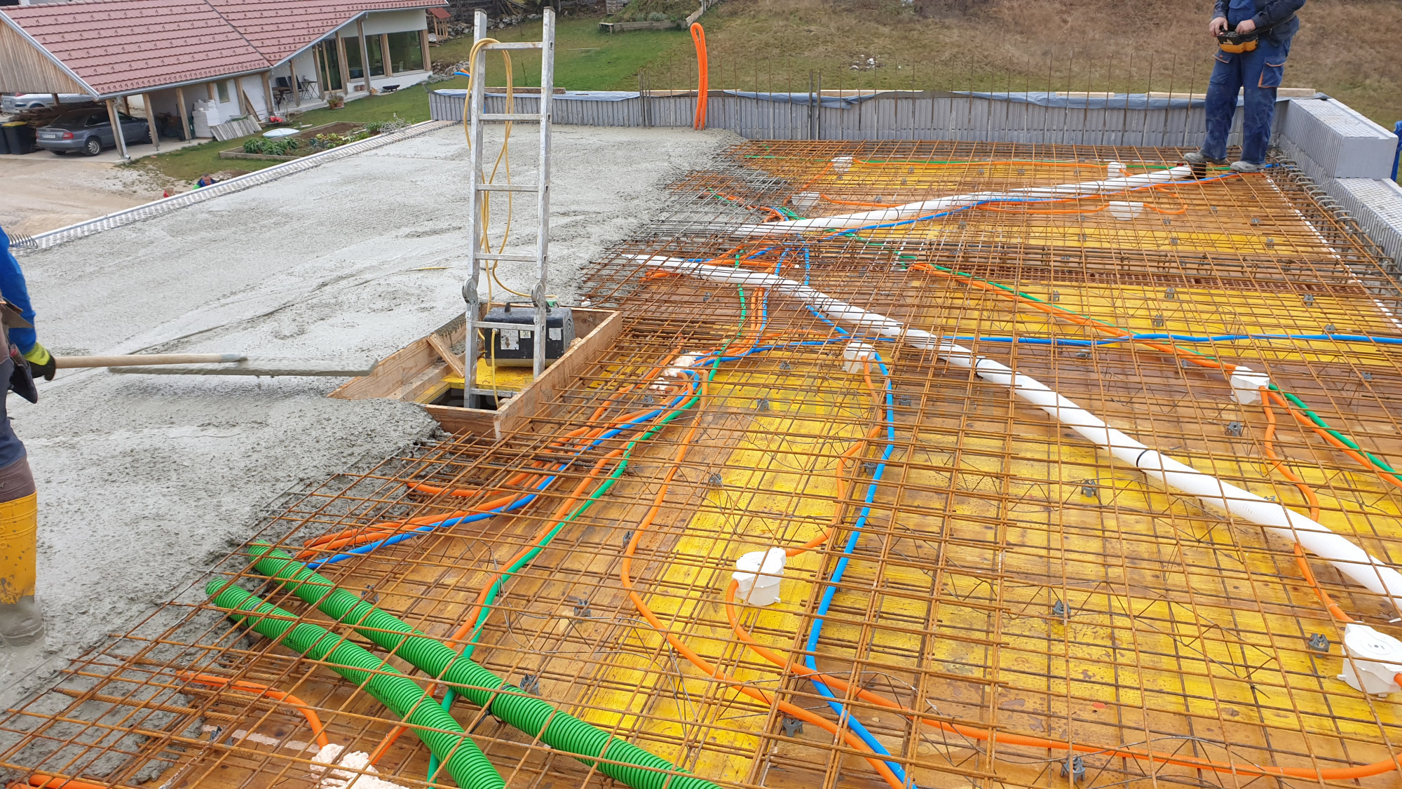 Pasivna hiša MA – Hotedršica – Betoniranja plošče nad nadstropjem