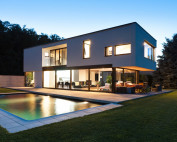 Bazen ni le estetski element, temveč tudi podaljšek arhitekturnega koncepta hiše — povezuje notranje in zunanje prostore ter ustvarja občutek zasebnega letovišča. S svojo mirno površino odseva fasado in okolico ter s tem dopolnjuje celostno podobo sodobne pasivne hiše z visokim bivalnim udobjem.