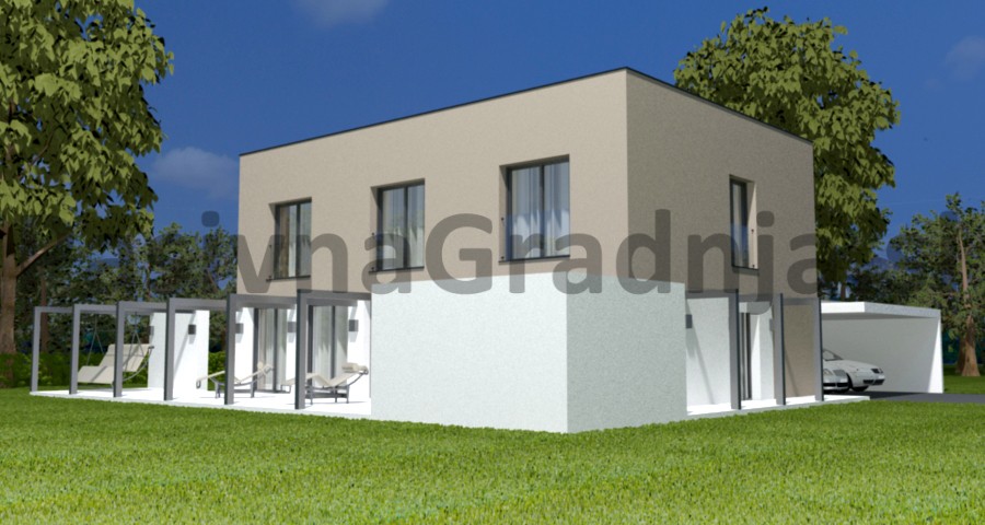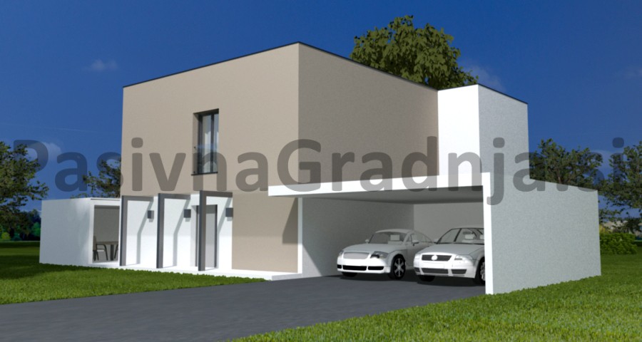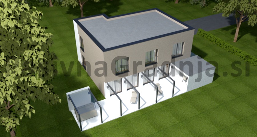 Opis: Pasivna hiša DRAVINJA ima nekoliko udobnejše zunanje dimenzije, kar omogoča tri otroške sobe z veliko lastno kopalnico. V pritličju je ob odprti dnevni sobi še velik kabinet.
