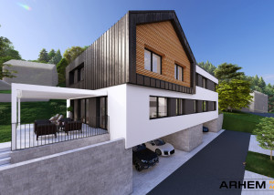 Tri Pasivni dvostanovanjski objekti Senožeti pri Ljubljani Projekt obravnava izvedbo treh dvostanovanjskih Pasivnih hiš v gabaritu P+N. Zaradi konfiguracije terena sta prva dva objekta enaka, zadnji pa je zasnovan glede na konfiguracijo terena in omogoča še nadkrit parkirni prostor na nivoju dostopa. Velikost stanovanjske enote v prvih dveh je objekta cca 122 m2 [...]