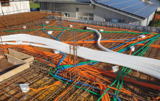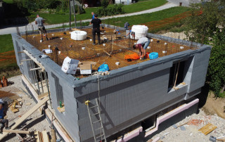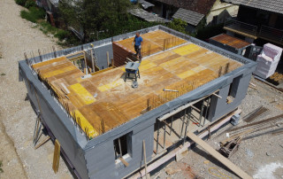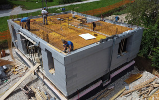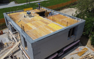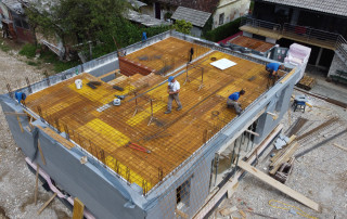Pasivna hiša R - Zgornja cona armature v plošči nad pritličjem Po zaključenih vseh razvodih inštalacij, ki so izvedene v plošči smo položili zgornjo cono armature in dodatne ojačitve, ki so potrebne. Pri plošči moramo narediti še obodni opaž in pa celoten opaž zavitih stopnic iz pritličja v nadstropje, kar je precej zahtevno, [...]